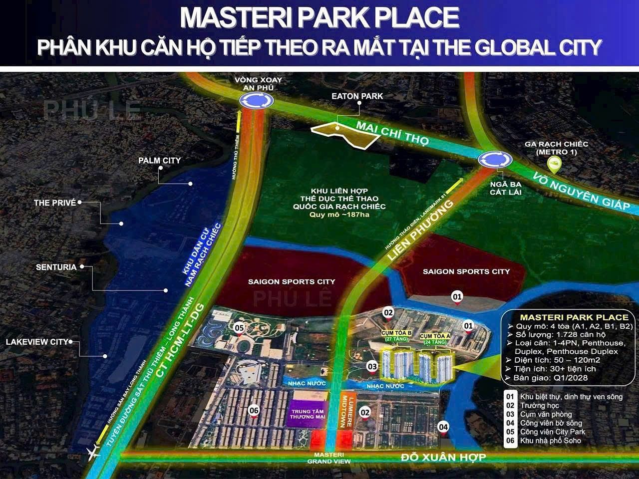Masteri Park Place (CT5) chính thức nhận booking tại trái tim The Global City: liền kề kênh đào nhạc nước & công viên ven sông, cạnh Lotte Mall 123.000m².